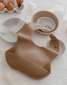 Designed with your little one in mind, Eeveve's silicone bib features a sturdy, reinforced closure that resists tugging and a built-in pocket specifically designed to catch food, ensuring mealtimes are less messy.