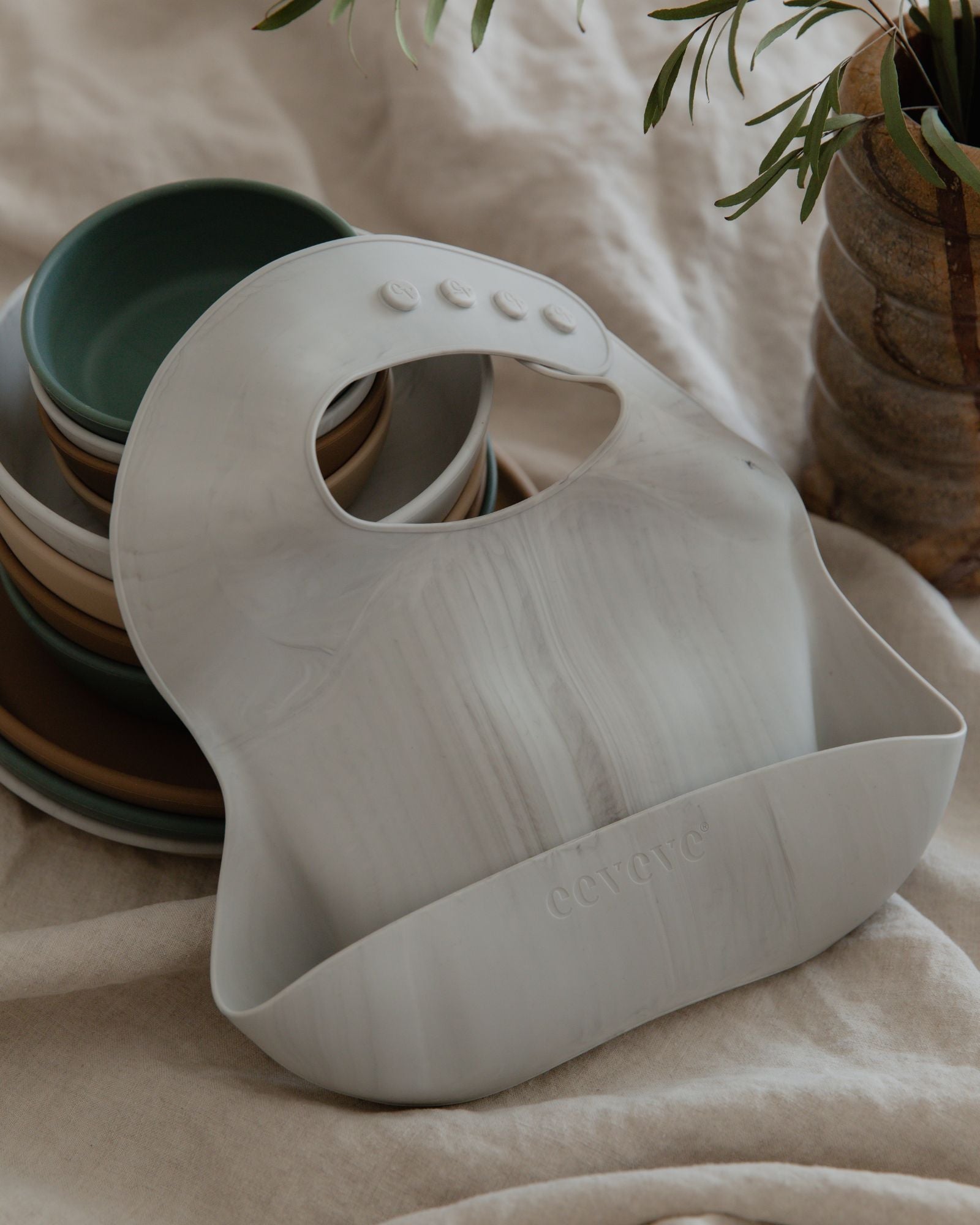 Designed with your little one in mind, Eeveve's silicone bib features a sturdy, reinforced closure that resists tugging and a built-in pocket specifically designed to catch food, ensuring mealtimes are less messy.