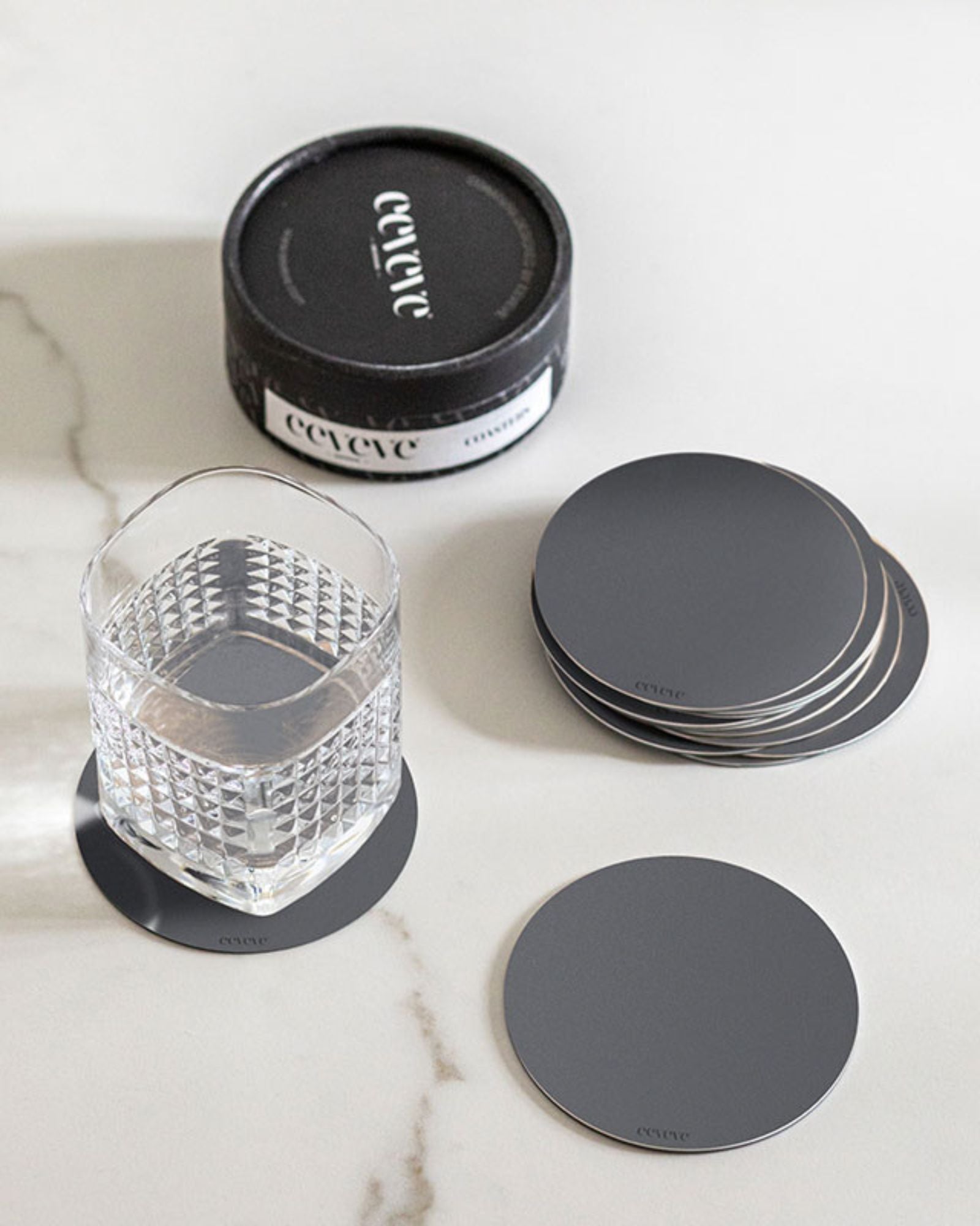 Eeveve's washable coasters aren't just incredibly handy, they also have a sophisticated appearance! Designed with an anti-slip layer, these coasters ensure your glass won't stick. Plus, any drink rings can be easily removed by placing the coasters in the dishwasher.