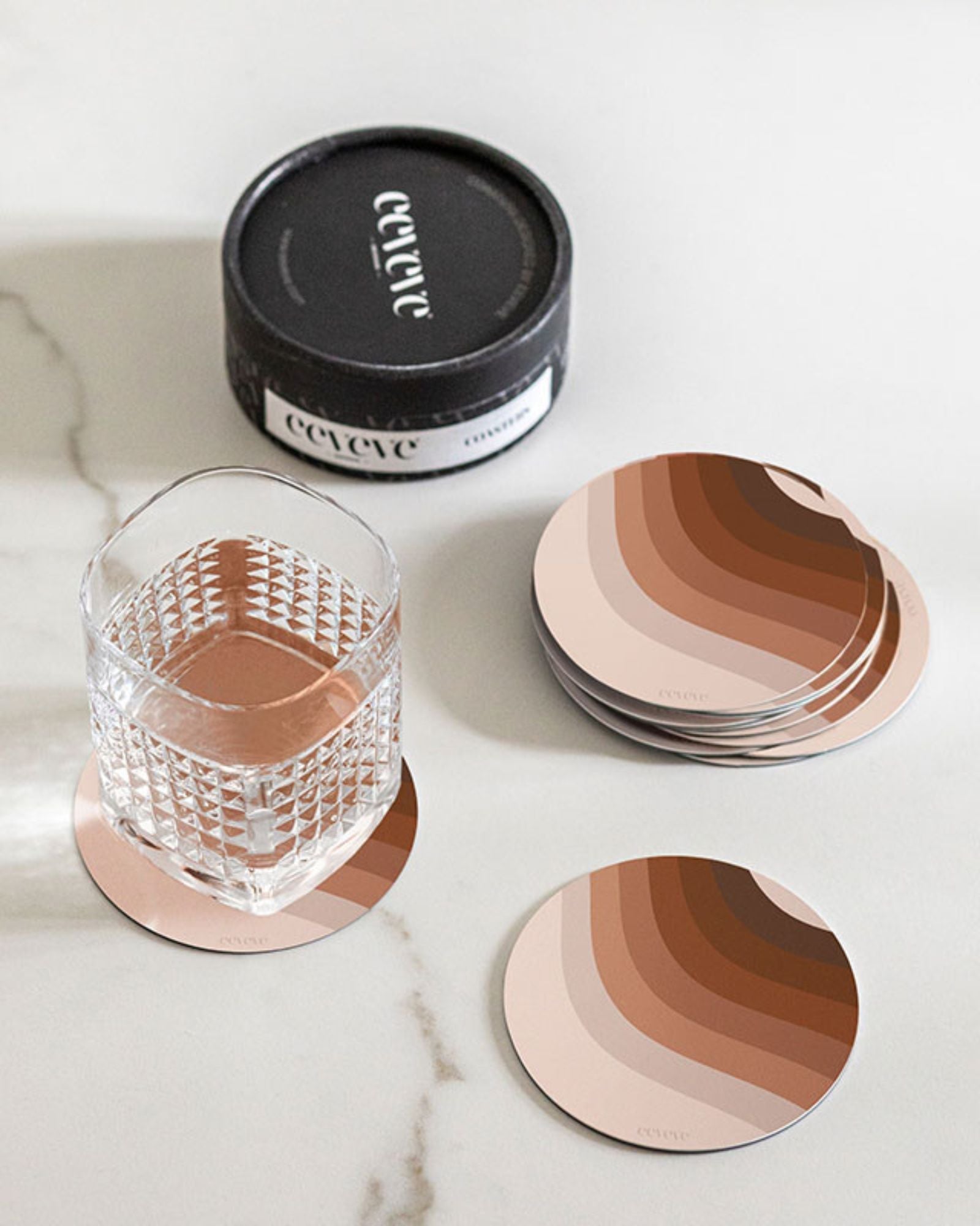 Eeveve's washable coasters aren't just incredibly handy, they also have a sophisticated appearance! Designed with an anti-slip layer, these coasters ensure your glass won't stick. Plus, any drink rings can be easily removed by placing the coasters in the dishwasher.