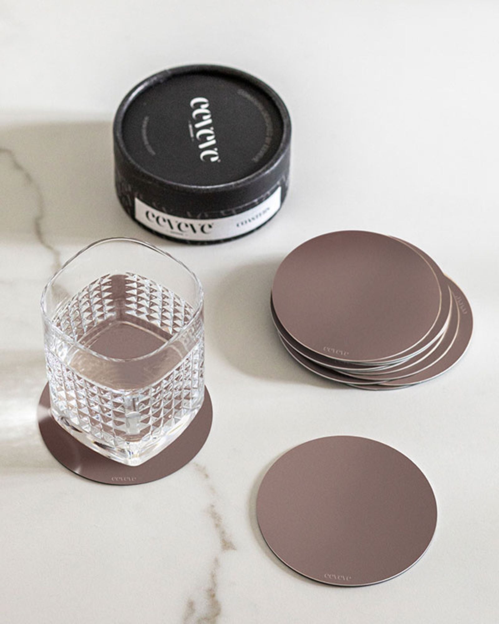Eeveve's washable coasters aren't just incredibly handy, they also have a sophisticated appearance! Designed with an anti-slip layer, these coasters ensure your glass won't stick. Plus, any drink rings can be easily removed by placing the coasters in the dishwasher.
