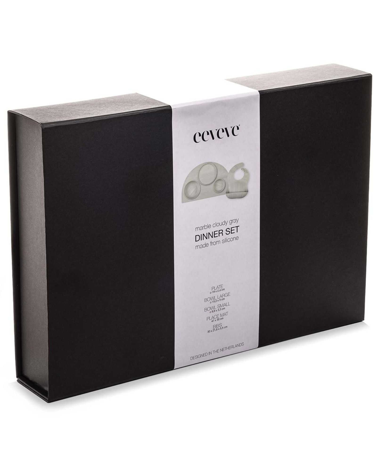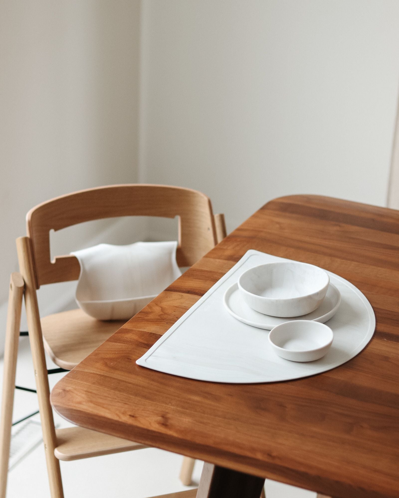 Gift Set Content (5 silicone items): Placemat, plate, bib, large and small-sized bowl. Child-friendly but with an adult look for a uniform table setting.