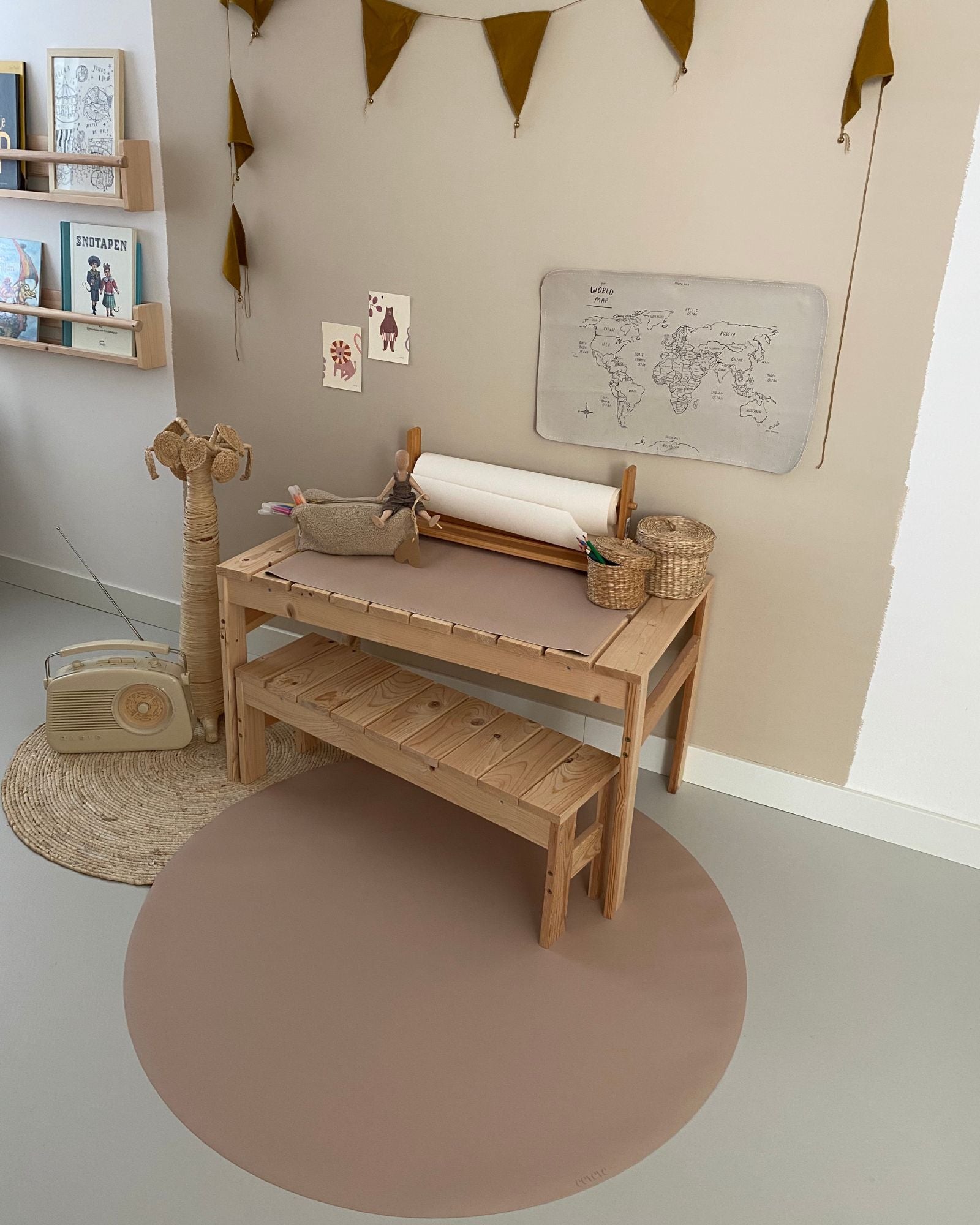 Whether it’s your baby’s first spoonful or a fun craft session, a high-quality floor protector under the high chair is a true must-have. Our round splat mat shields your floor while adding style and function in one. Made from waterproof vinyl, it’s easy to clean and comes in subtle colours and timeless designs, perfect for any interior. The ideal balance of practicality and style.