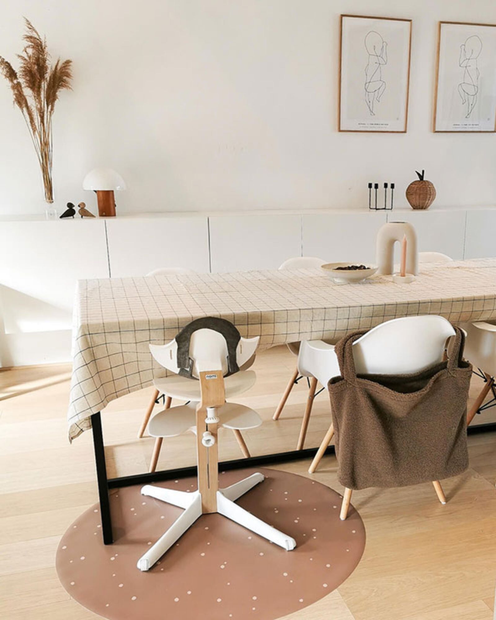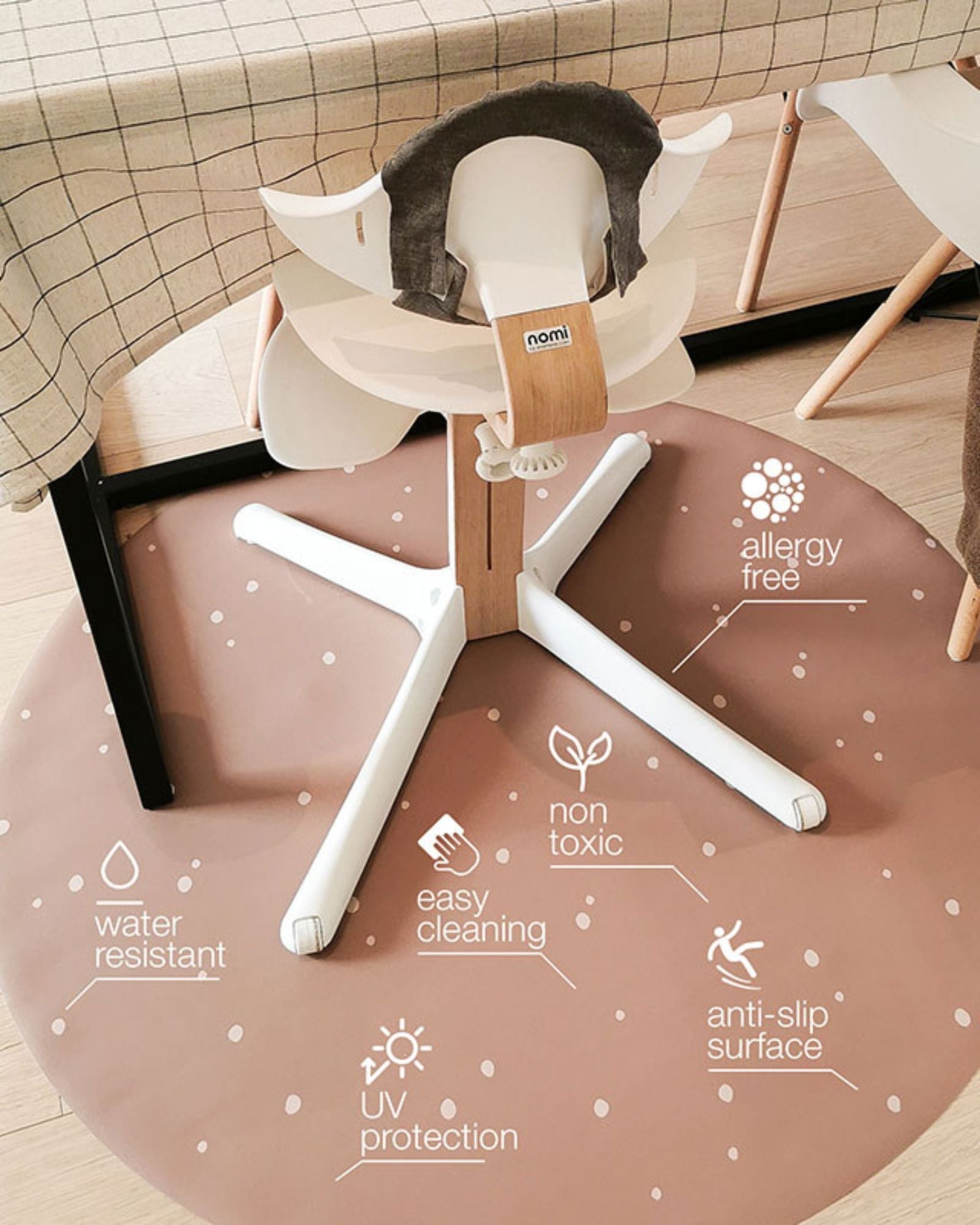 Whether it’s your baby’s first spoonful or a fun craft session, a high-quality floor protector under the high chair is a true must-have. Our round splat mat shields your floor while adding style and function in one. Made from waterproof vinyl, it’s easy to clean and comes in subtle colours and timeless designs, perfect for any interior. The ideal balance of practicality and style.