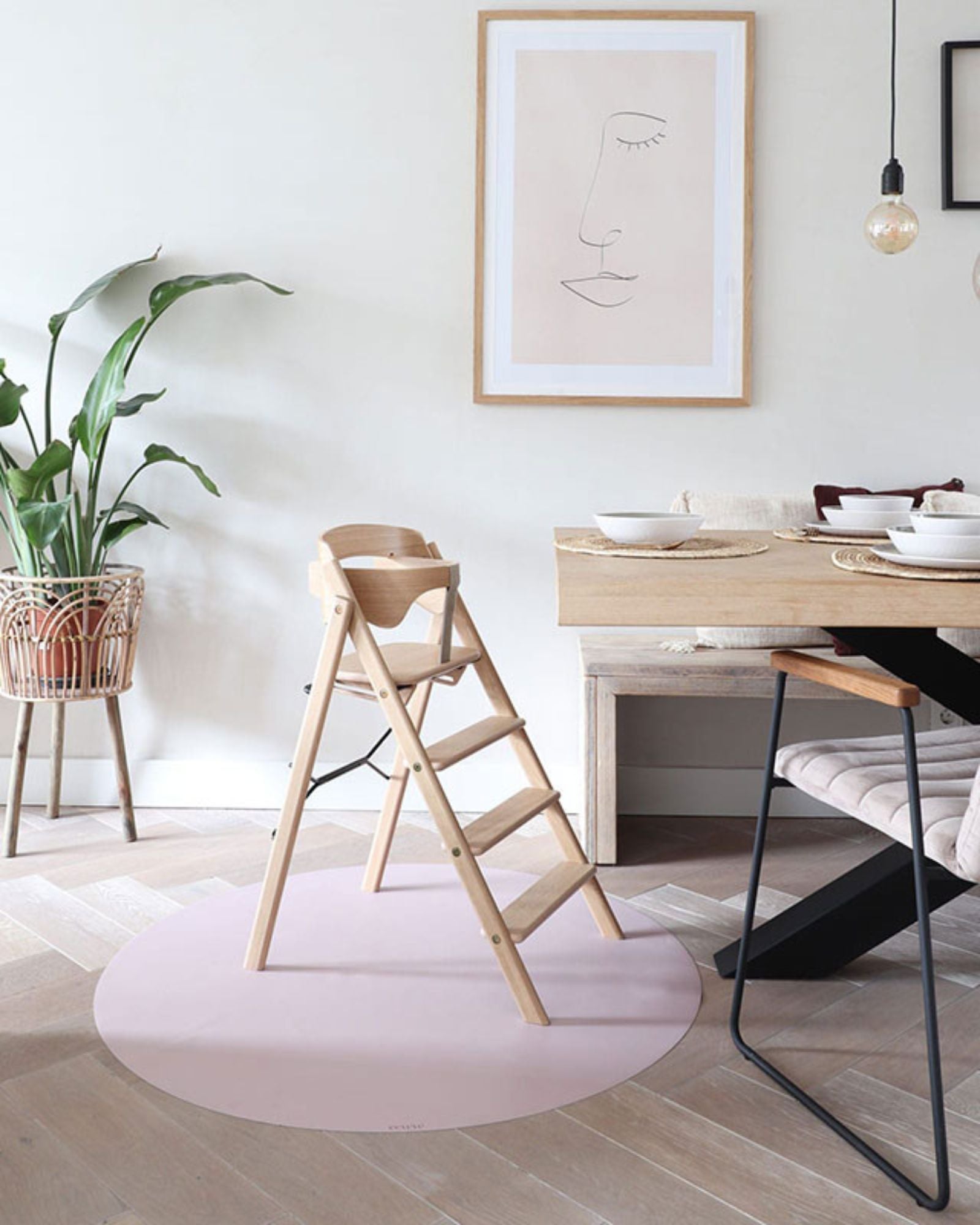Whether it’s your baby’s first spoonful or a fun craft session, a high-quality floor protector under the high chair is a true must-have. Our round splat mat shields your floor while adding style and function in one. Made from waterproof vinyl, it’s easy to clean and comes in subtle colours and timeless designs, perfect for any interior. The ideal balance of practicality and style.