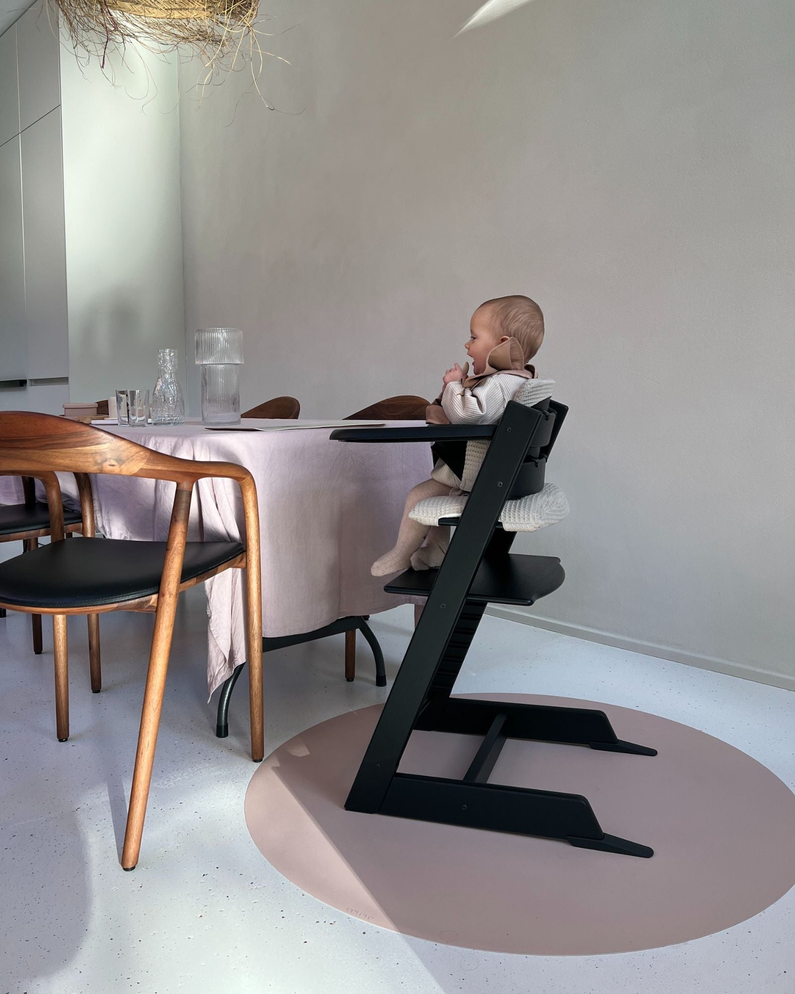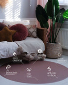 Whether it’s your baby’s first spoonful or a fun craft session, a high-quality floor protector under the high chair is a true must-have. Our round splat mat shields your floor while adding style and function in one. Made from waterproof vinyl, it’s easy to clean and comes in subtle colours and timeless designs, perfect for any interior. The ideal balance of practicality and style.